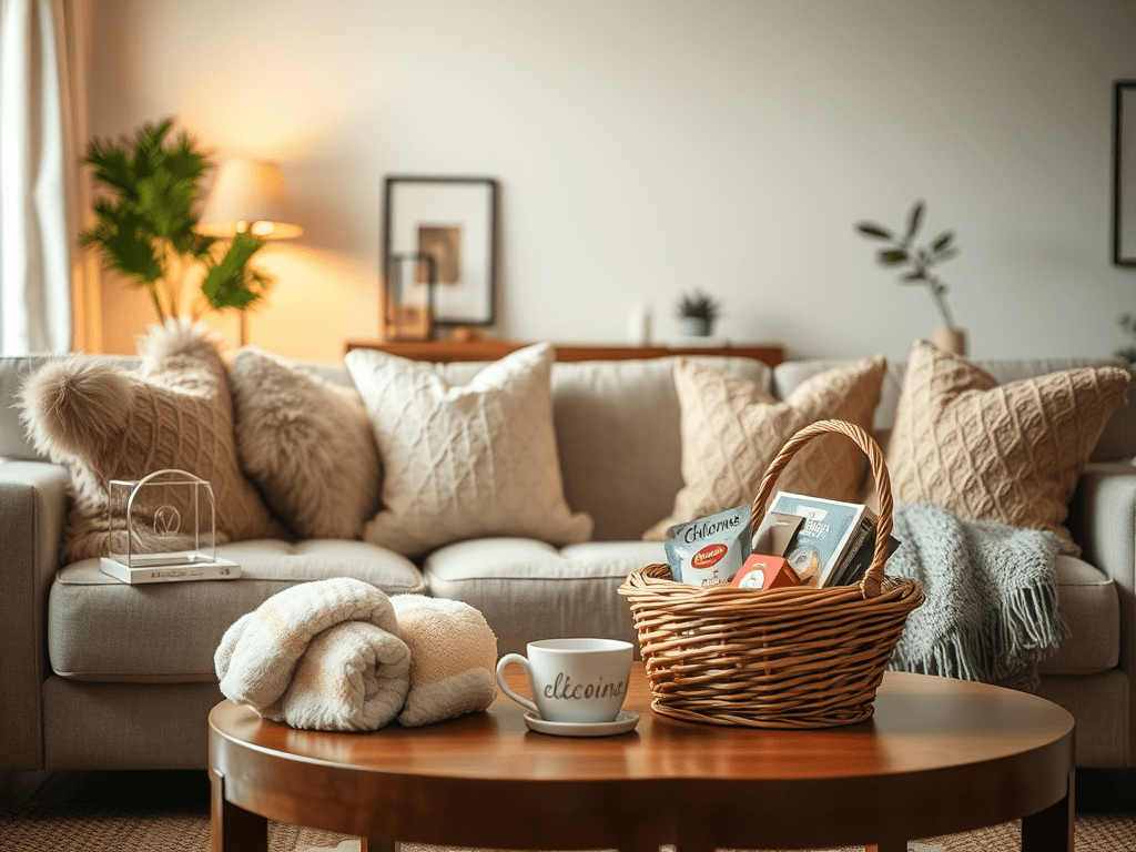 - A welcome basket: Fill it with snacks, bottled water, and local treats.